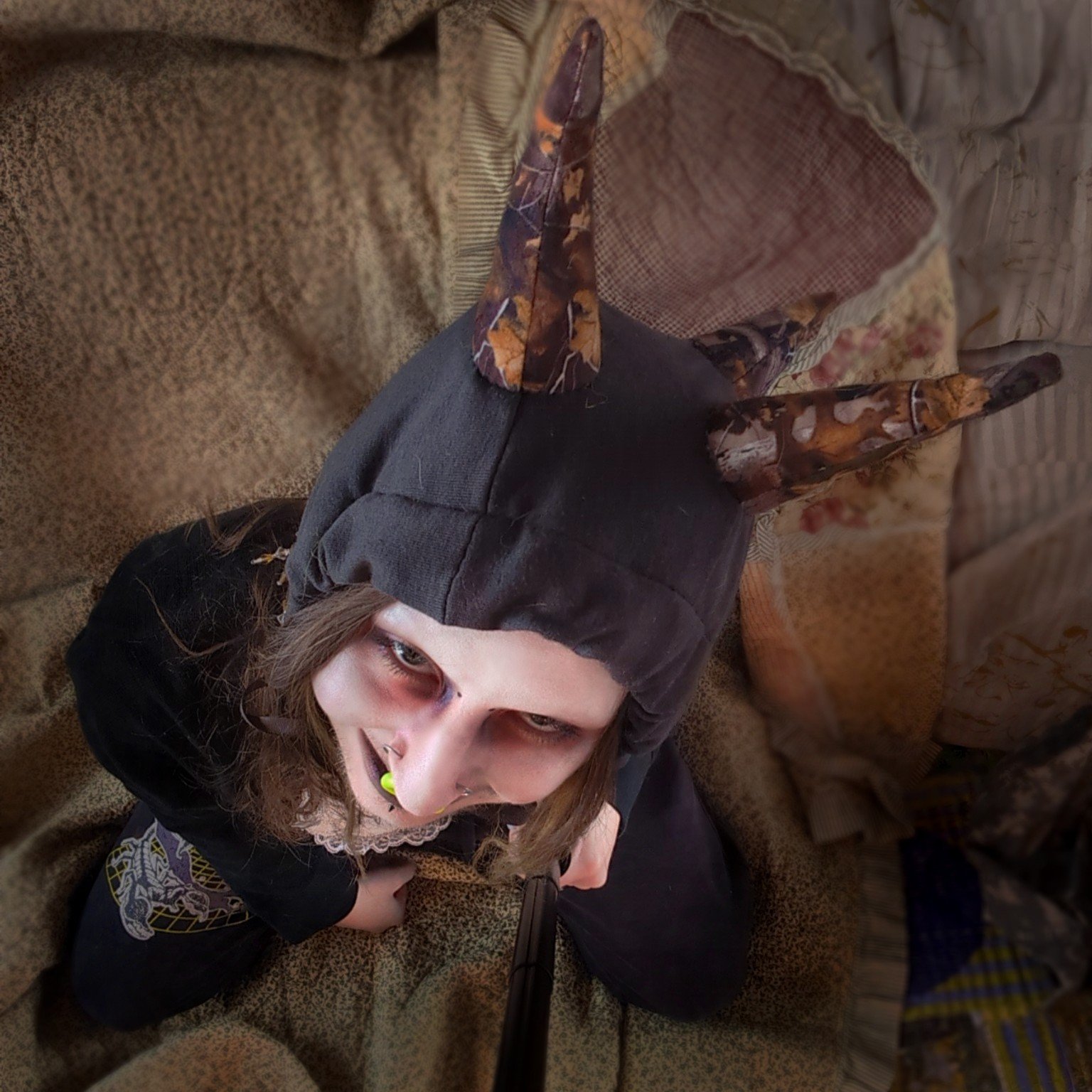 Four-spiked hood for the creature who lurks in the woods.